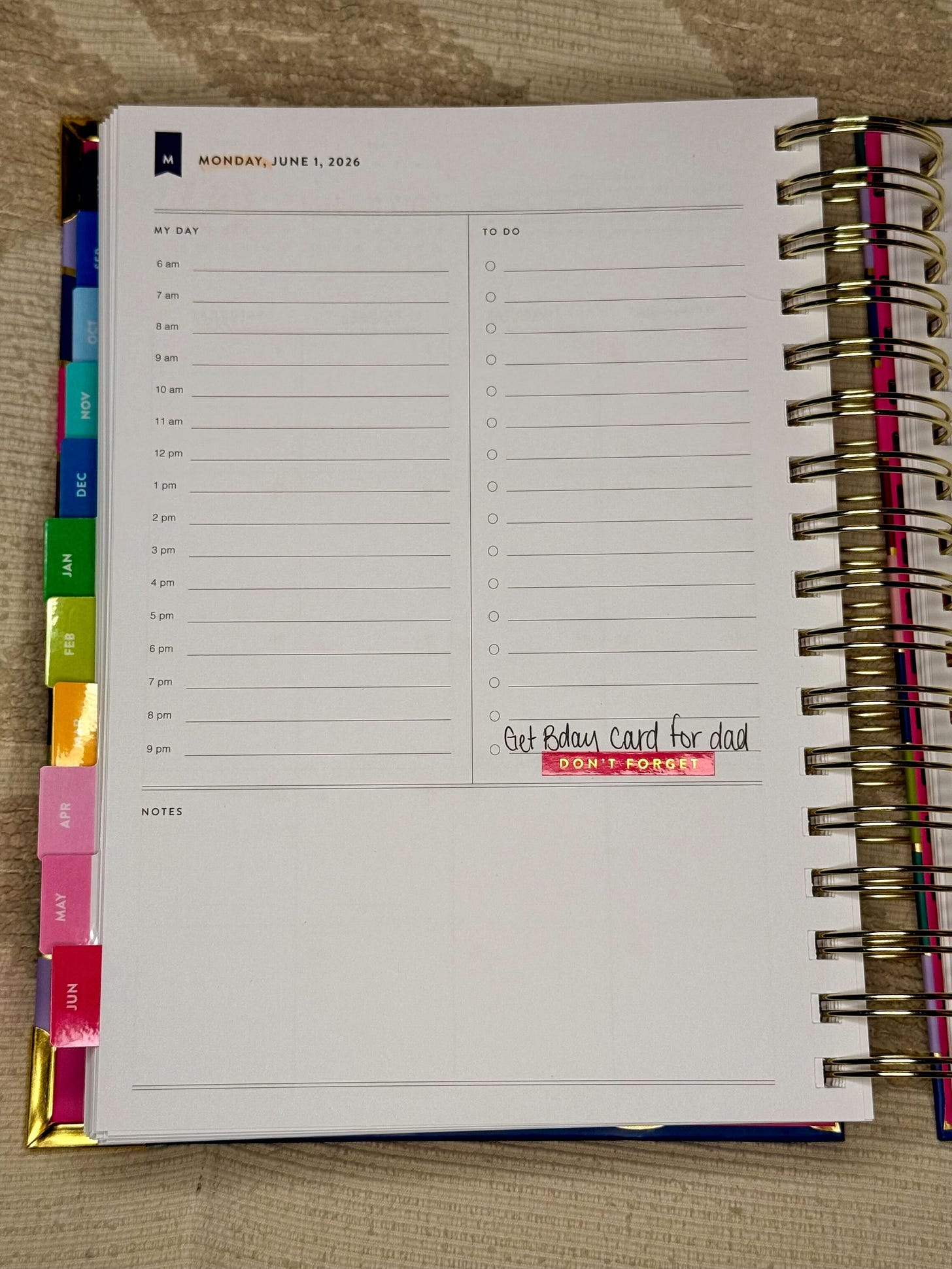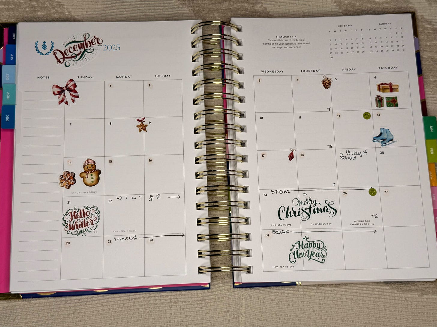 Once my daughter hit school age, I started using an academic year planner instead of a calendar year because it’s easier to have her whole school year in the same book.