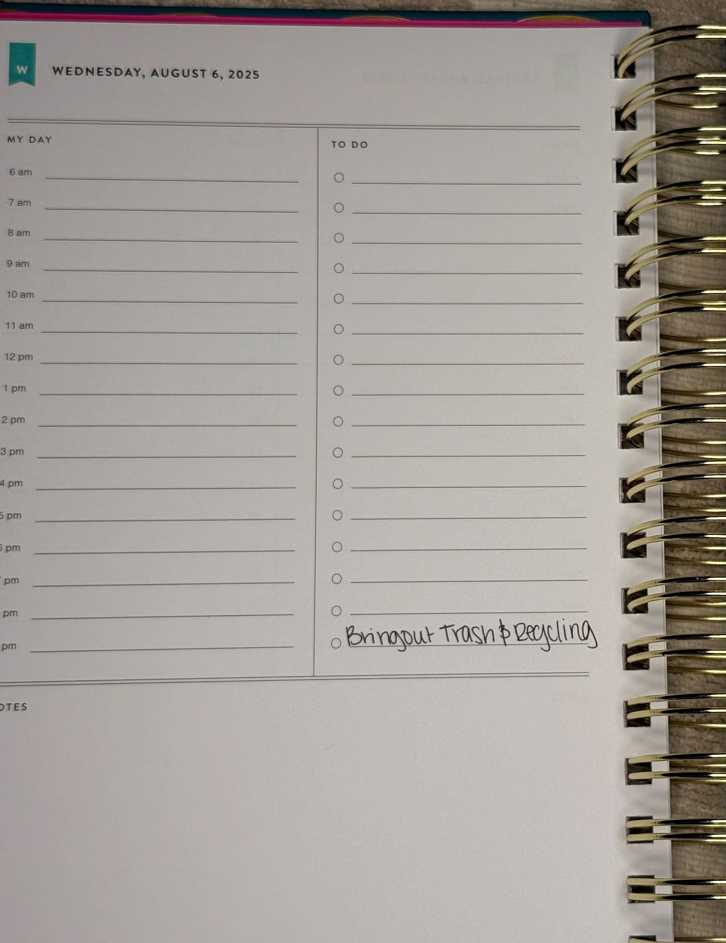 Okay hear me out: trash is every week, but recycling is every other week and I can *never* keep it straight. So I add it to my planner on 👂 the calendar spread and the individual days.